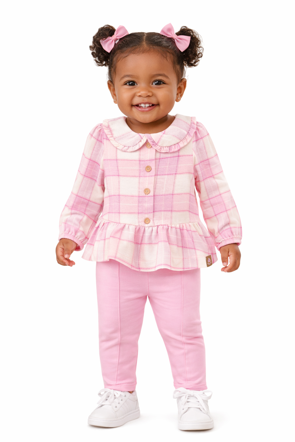 Prepare sua pequena para os dias frios com o máximo de estilo e aconchego! O Conjunto Somini une a delicadeza de uma batinha com estampa clássica ao conforto imbatível da legging em helanca. É a escolha número um para as mamães que buscam um visual "arrumadinho" sem abrir mão da liberdade de movimento que a infância exige.