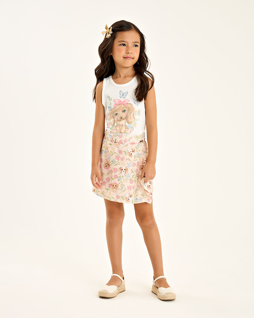AConjunto Infantil Feminino Shorts Saia Estampado com Blusa em Modal – Conforto Premium e Delicadeza Exclusiva