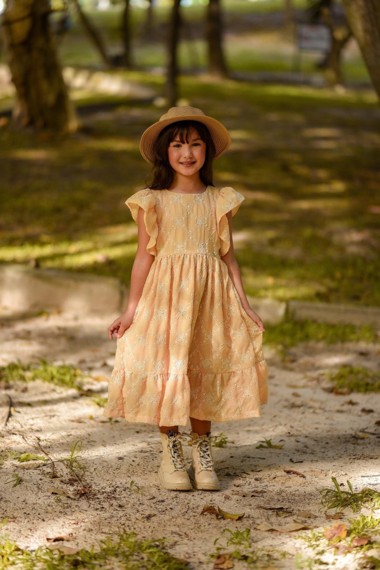 O Vestido Infantil Midi Pêssego com Bordado Delicado é uma escolha perfeita para graças especiais onde cada detalhe importante. Sofisticado, leve e extremamente delicado, combina romantismo e elegância na medida certa.