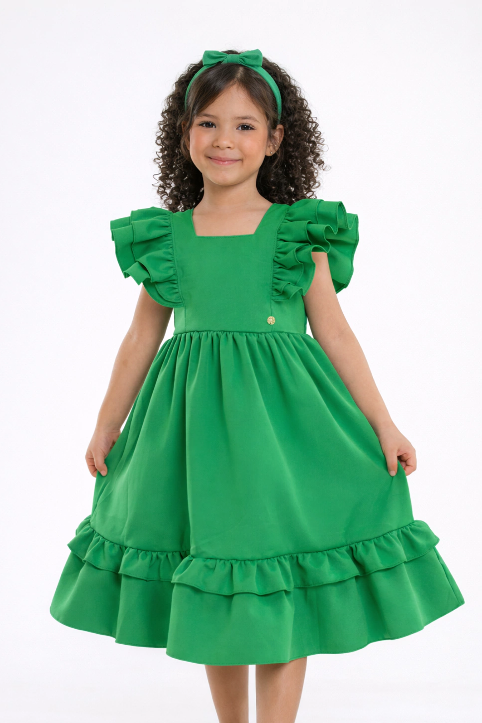 Vestido Infantil Luxo em Crepe Dior – Elegância para Festas e Ocasiões Especiais