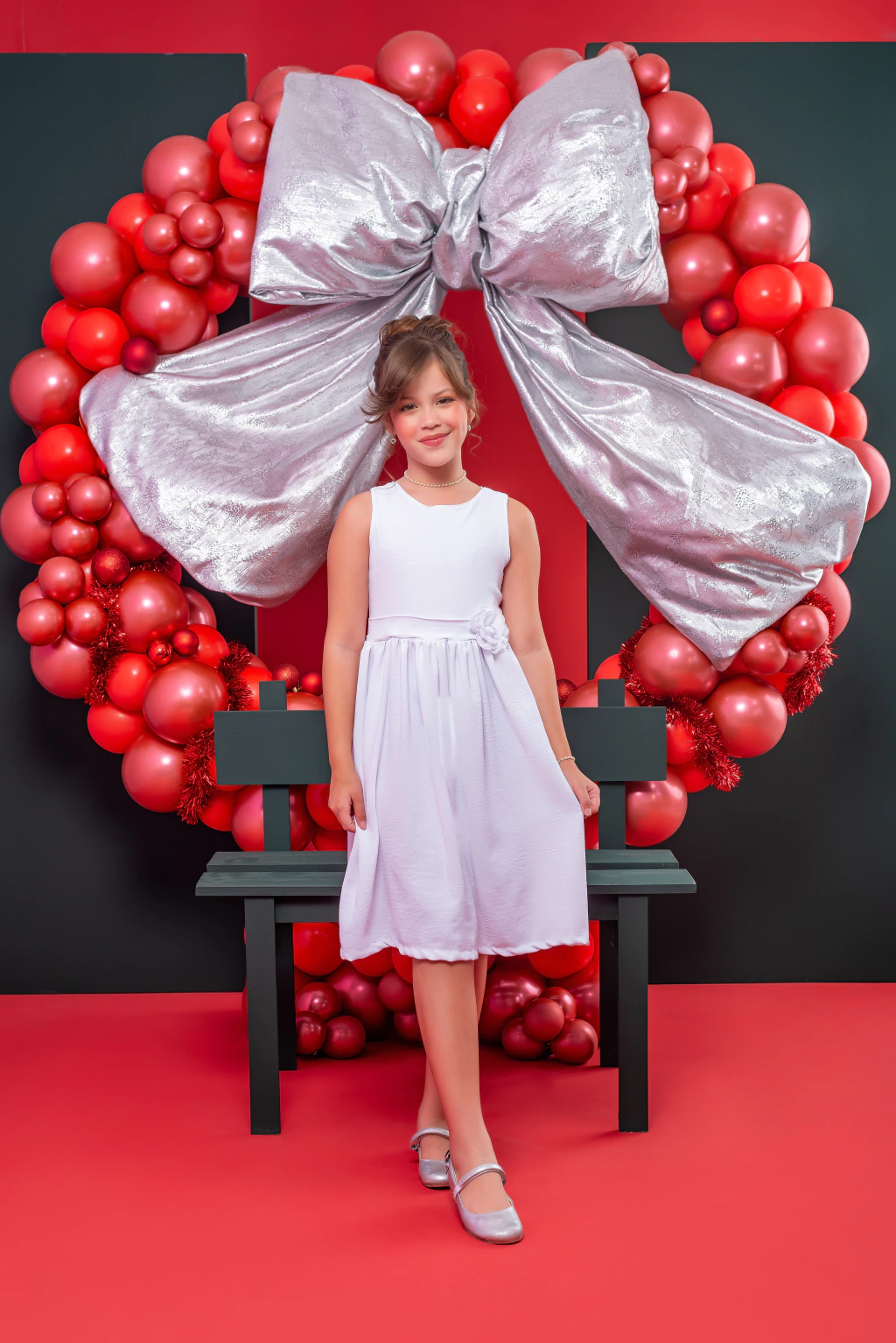 A delicada flor lateral traz um charme especial ao vestido, tornando-o uma peça única e marcante. O vibrante tom vermelho não apenas destaca a beleza da sua filha, mas também a faz brilhar em qualquer evento!